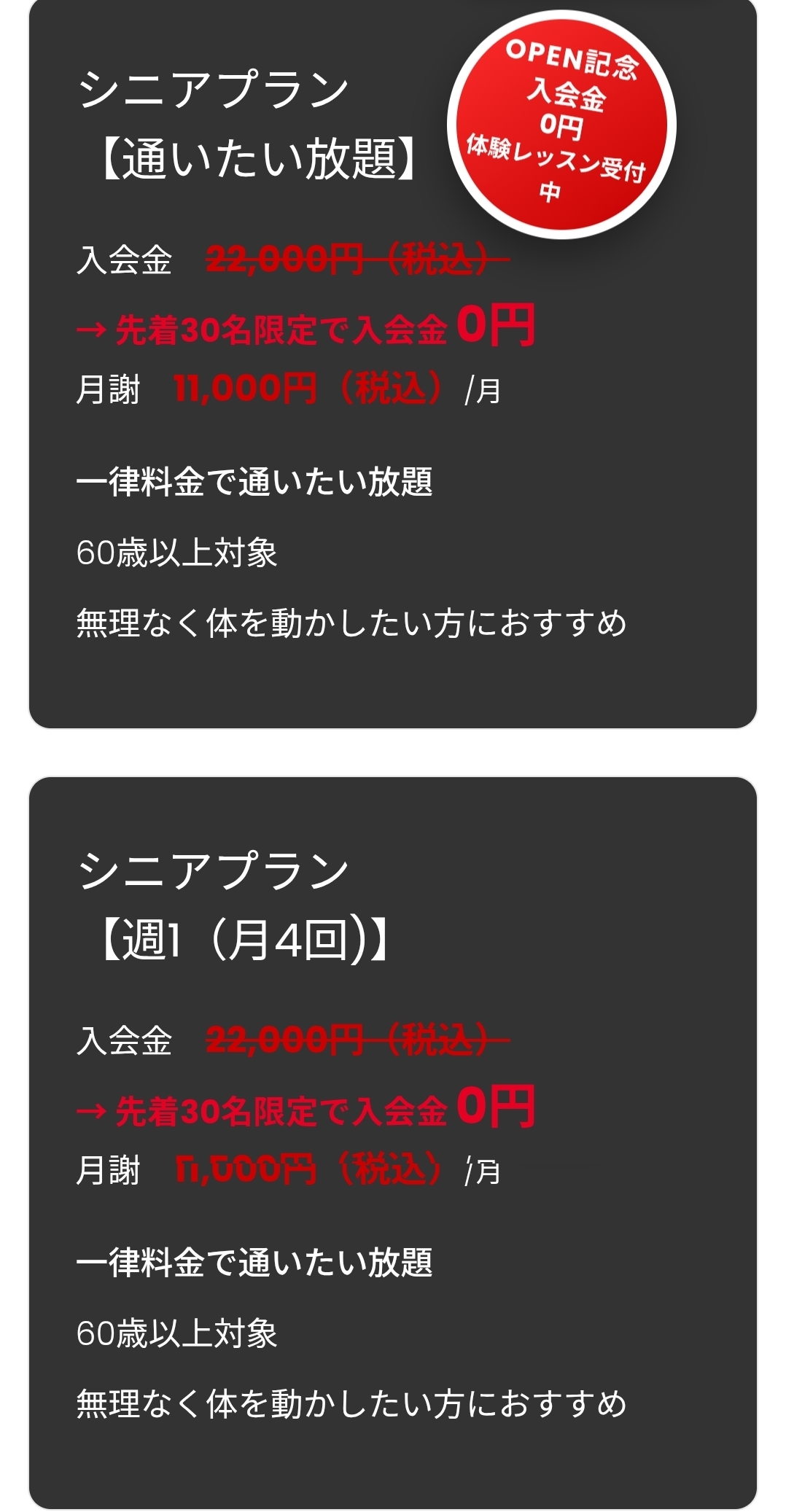 また料金プランも新たに週1回(月4回)コース11,000円(税込)にシニアコース(60歳以上の方限定)も通いたい放題コース11,000円(税込)週1回コース(月4回)5,500円(税込)が新たに追加されました!