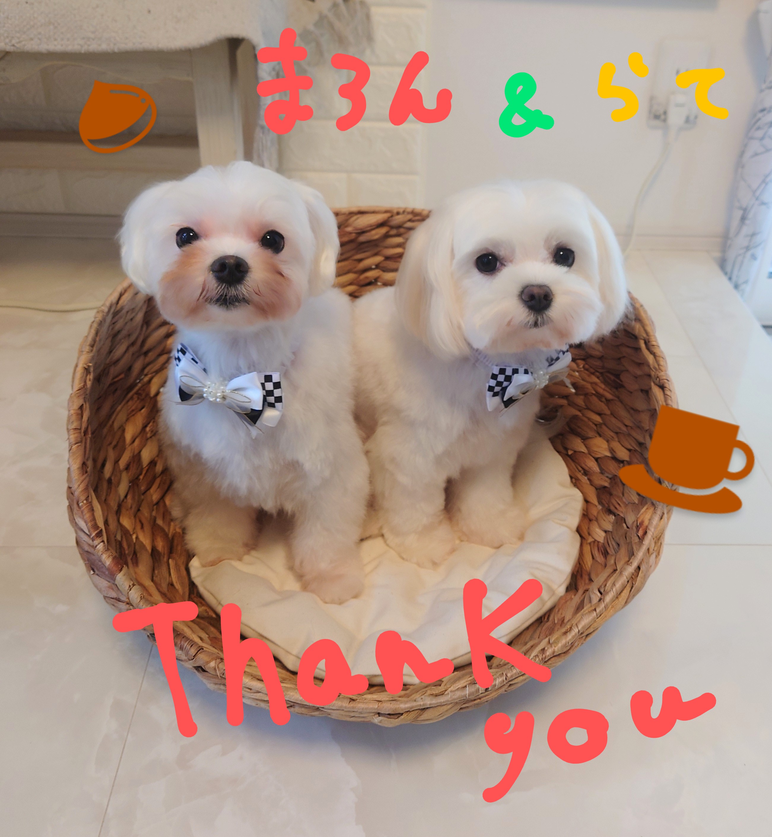 マルチーズのまろんちゃんとらてちゃん